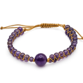 Inspiré des bracelets tibétains Shamballa, ce modèle en améthyste naturelle associe élégance et spiritualité. Les billes de 4 mm et 12 mm sont soigneusement tressées à la main sur un fil ajustable, pour un confort optimal et un style raffiné.