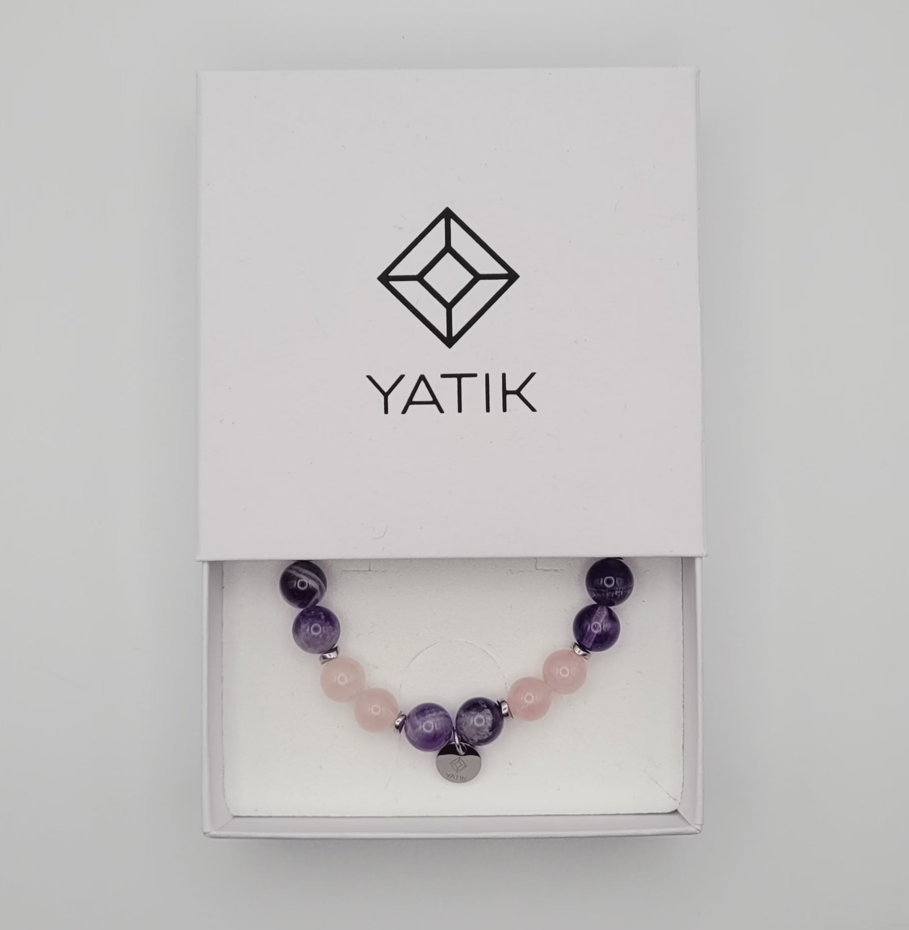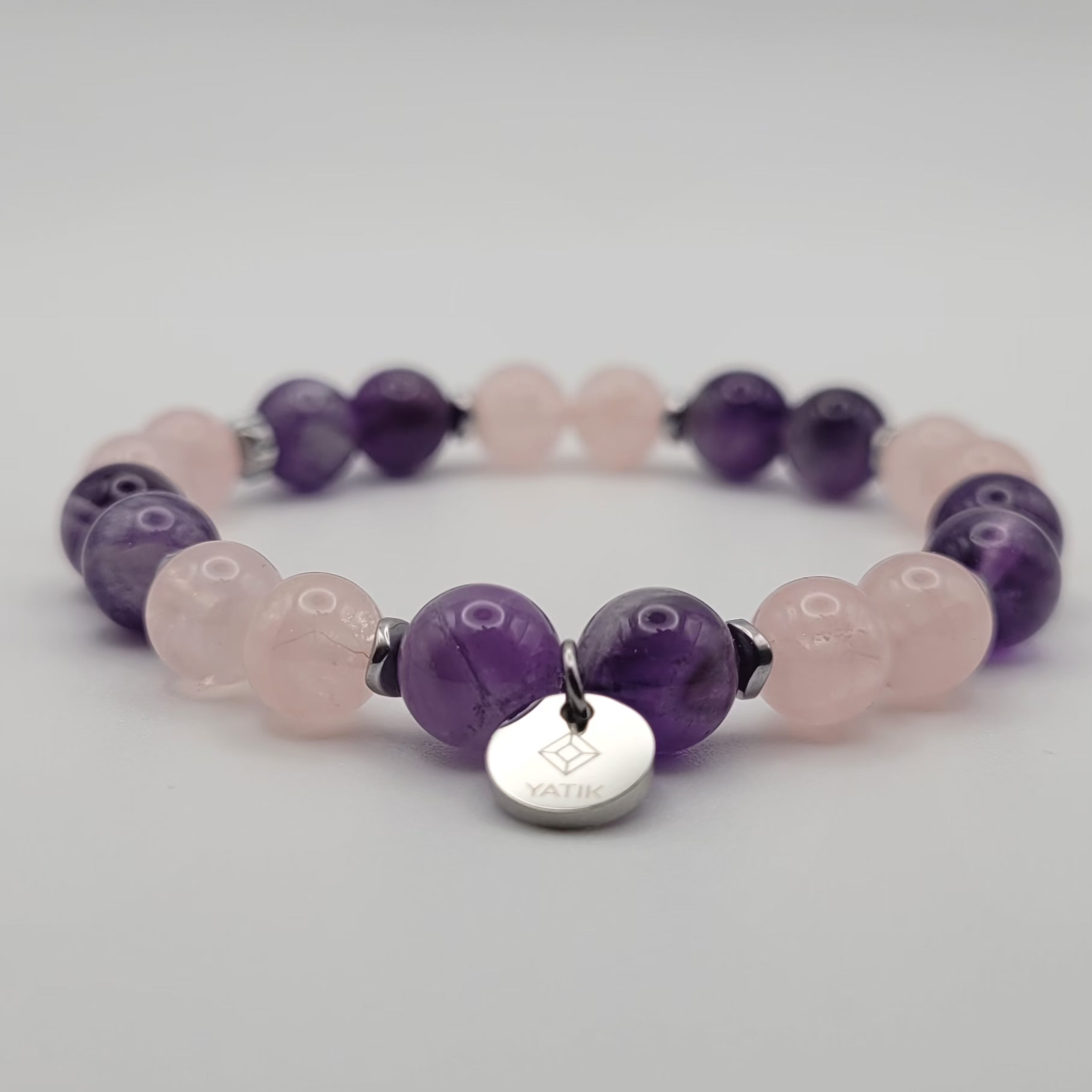 - Pierres naturelles : Quartz rose & Améthyste