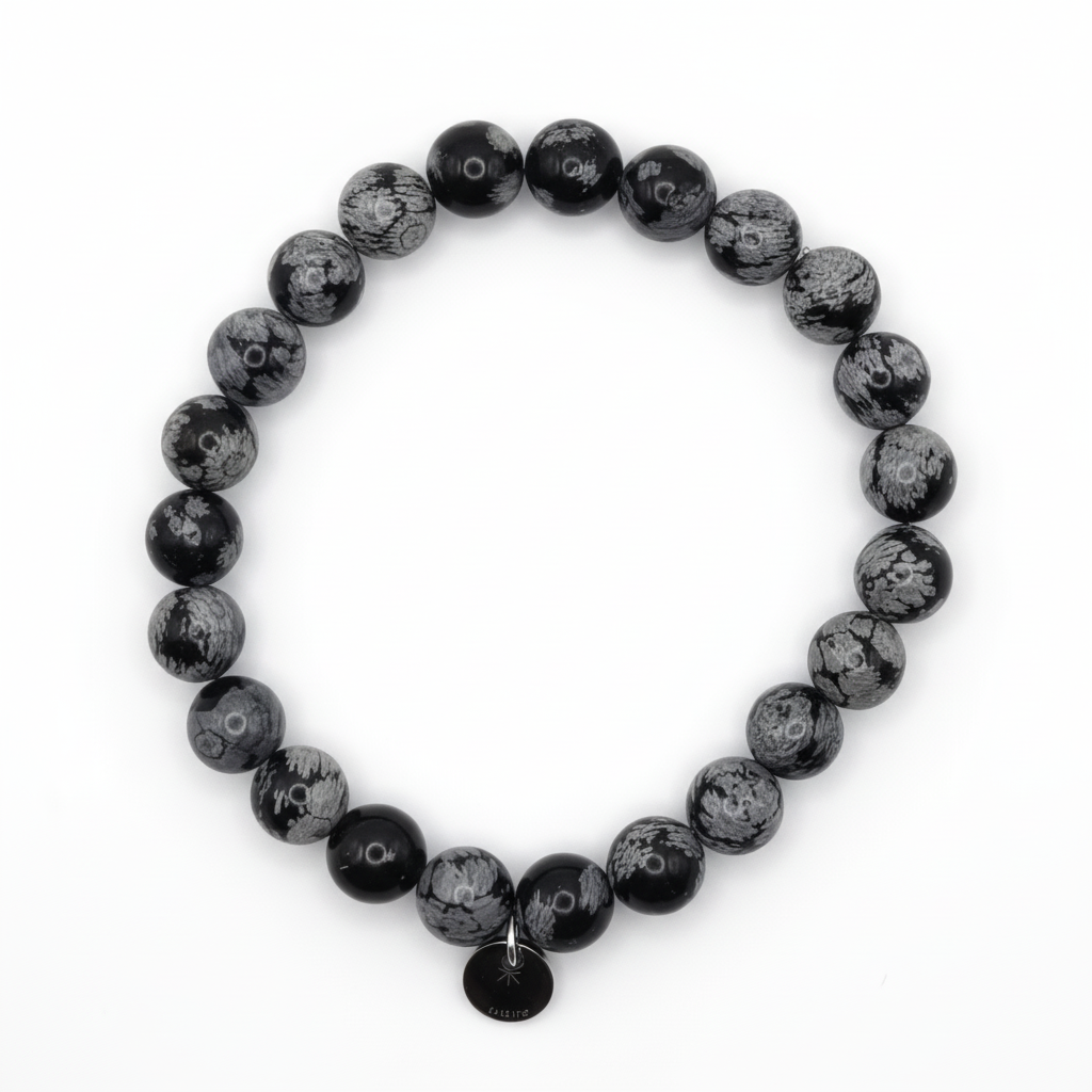 Bracelet Bouclier d’Ombre – Obsidienne flocons de neige